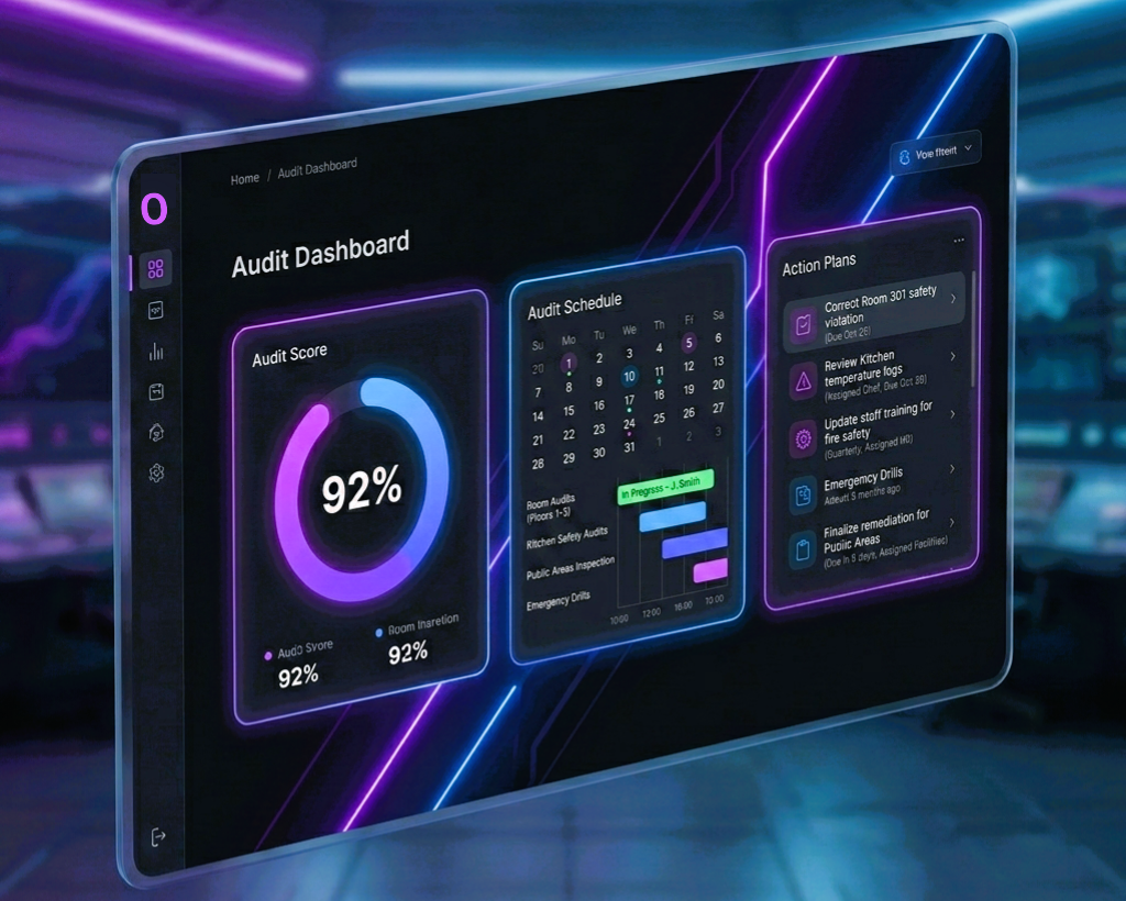 Orvia gives hotel operators the compliance systems that big chains take for granted — digital checklists, real-time scoring, and action tracking. All offline-capable.